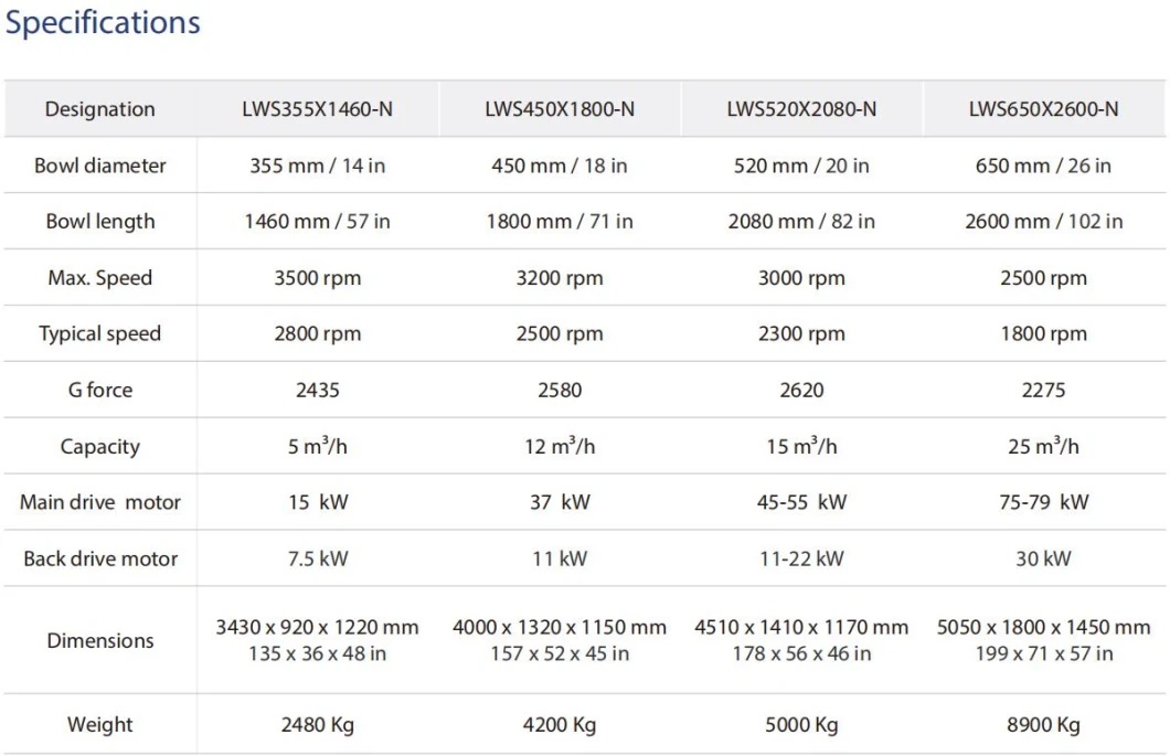 Centrífuga decantadora de óleo residual Shenzhou LWS 520: Alta Força G até no máximo 3000.