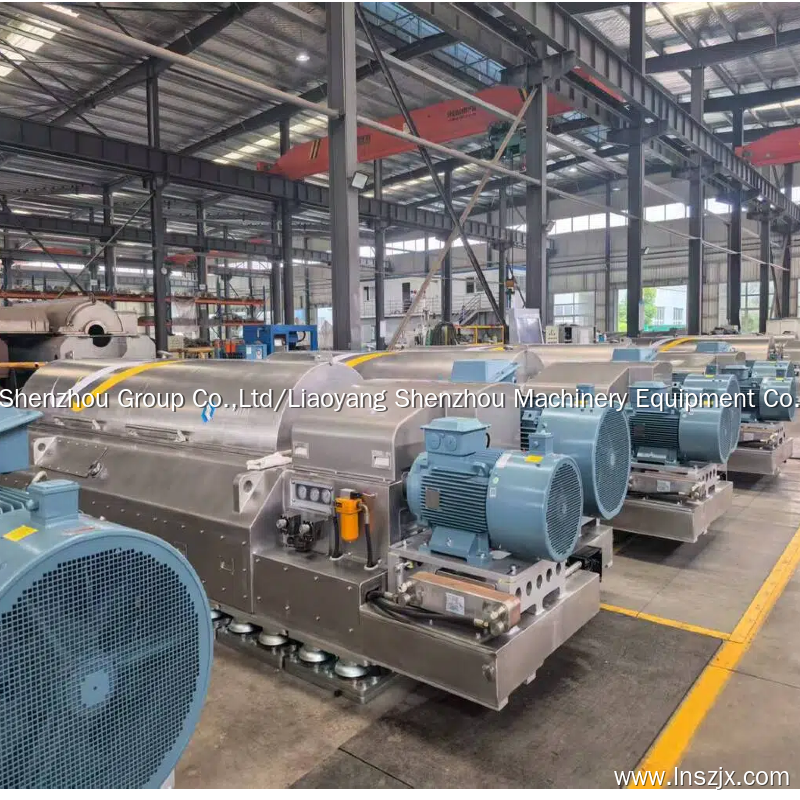 Casca de citrinos: O elevado teor de fibras (15%-25%) e a elevada viscosidade do extrato exigem uma elevada velocidade de rotação (4000-5000 rpm) e uma elevada relação comprimento/diâmetro (≥4:1) para melhorar a sedimentação. Por exemplo, na patente para a separação líquido-resíduo da casca de citrinos, utiliza-se um tambor com um diâmetro de 430 mm e uma velocidade de rotação de 4200-4500 rpm, reduzindo o teor de humidade da pectina para 40% após o tratamento.