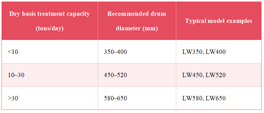 Teor de umidade: Quanto maior o teor de umidade inicial (como 99%), deve ser selecionado o modelo com maior eficiência de separação (como alta velocidade de rotação e grande relação comprimento-diâmetro).