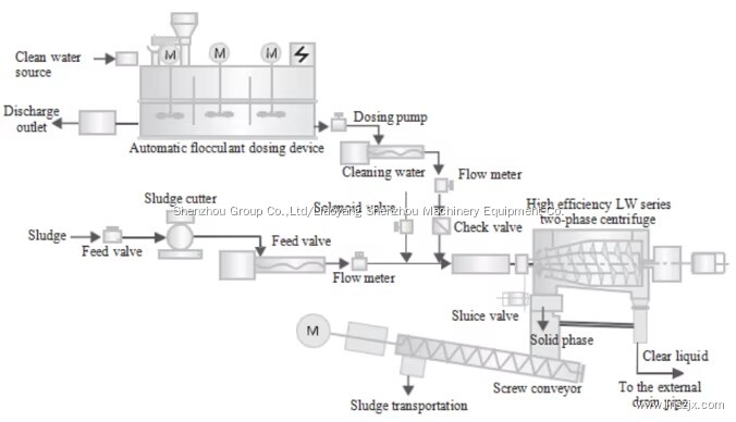 Adicione (concentração de 1 a 3‰) solução de PAM no tubo de alimentação através do dispositivo de dosagem automático para fazer o lodo formar flocos na centrífuga.