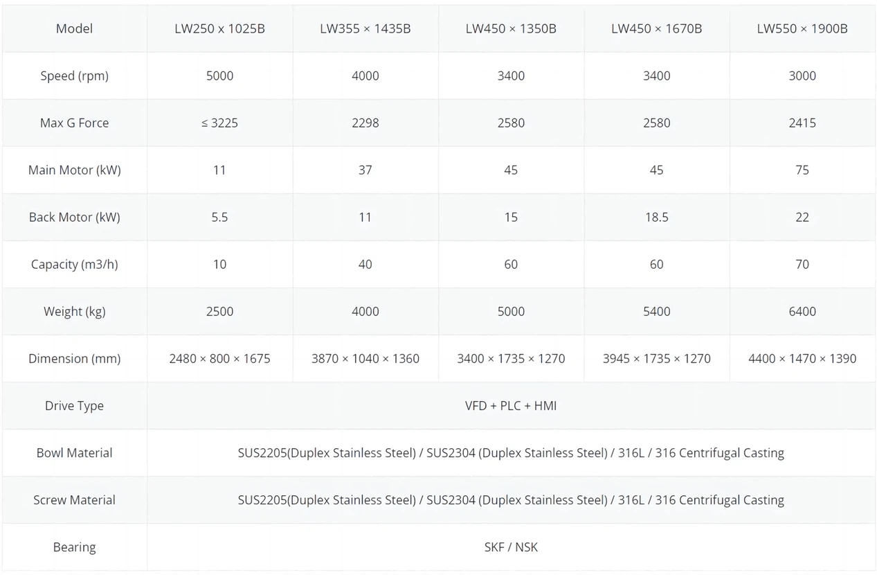 A centrífuga de sedimentação de descarga espiral horizontal para purificação de fluido de perfuração de petróleo e gás (centrífuga de conversão de frequência da série LW - tipo de conversão de frequência dupla de motor duplo) é um modelo de grande deslocamento desenvolvido para alta velocidade e grande capacidade de processamento. Ele foi projetado para um corpo de estrutura integrado, que é conveniente para instalação e elevação no local; São adotados tratamento à prova de explosão, à prova de corrosão, à prova de intempéries e absorção de choque. O conversor de frequência e outros componentes elétricos são instalados no gabinete à prova de chamas. O gabinete à prova de chamas está equipado com sistema de aquecimento e ventilação, adequado para operação em campo.