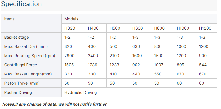 A centrífuga de pistão de dois estágios da série HR é uma centrífuga de filtro de operação contínua. Alimentação completa, desidratação, lavagem, secagem e descarga a toda velocidade. É adequado para separar materiais cristalinos ou fibrosos curtos com tamanho de partícula (tamanho de partícula) de 0,07 mm ~ 5 mm e concentração de suspensão (proporção de volume de fase sólida) de 30% ~ 80%, especialmente adequado para materiais que precisam ser lavados na máquina .
