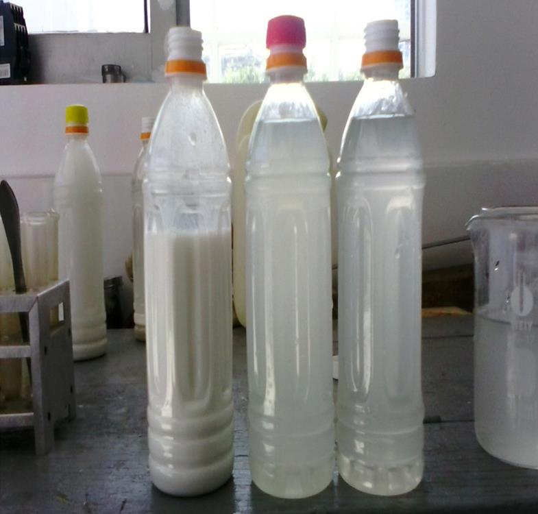 As centrífugas descascadoras podem ser usadas para remover mecanicamente a água do leite com amido.