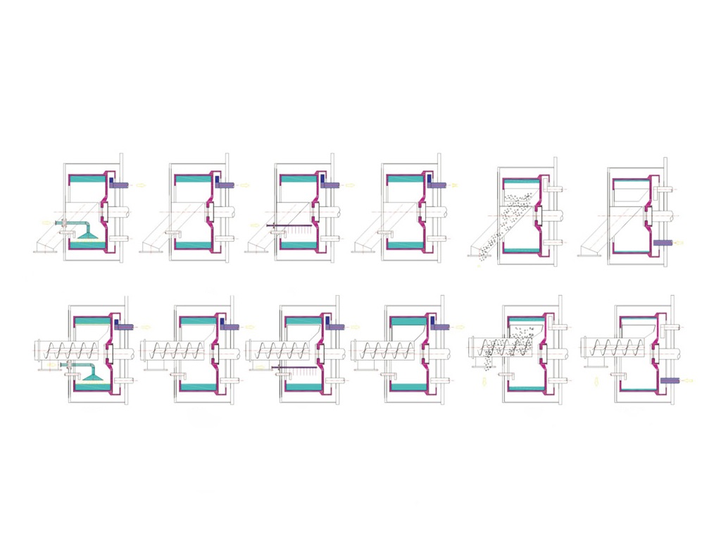 With the rotary siphon basket it is possible to feed backwash liquid from an overhead mounted prime tank through the siphon chamber to permeate the residual heel from underneath. This process re-suspends the residual heel and restores its permeability. It also primes the rotary siphon for the next filtration cycle. The liquid pool on top of the heel created through backwashing will assist in evenly distributing the subsequent cycle’s incoming suspension, which will virtually eliminate the potential for imbalances during the feed step.